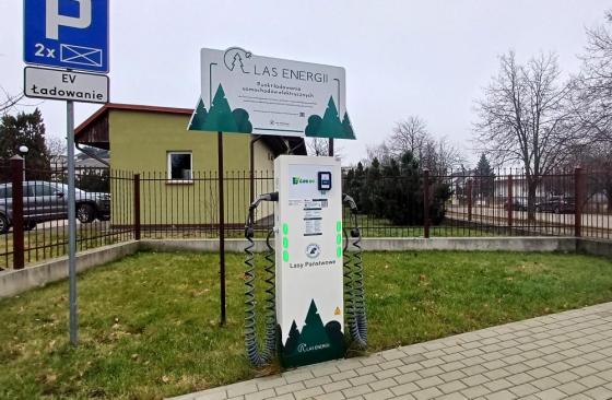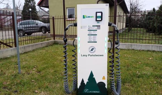 Wówczas powstała koncepcja budowy stacji ładowania pojazdów zlokalizowanych przy budynkach nadleśnictw. Ponadto w związku z koniecznością dostosowania obiektów użyteczności publicznej do przepisów prawa zawartych w ustawie z 11 stycznia 2018 roku o elektromobilności i paliwach alternatywnych, zaszła konieczność budowy stacji ładowania pojazdów. Ten cel udało się osiągnąć we wrześniu bieżącego roku, kiedy uruchomiono ogólnodostępną stację ładowania pojazdów. Jest to urządzenie o normalnej mocy 2x22KW, typu AC, umożliwiające jednoczesna ładowanie dwóch pojazdów elektrycznych. Cena brutto za 1 kWh wynosi 2,05 zł.