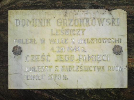 Obelisk oraz głaz narzutowy upamiętniające byłego nadleśniczego Nadleśnictwa Ruda Bolesława Kiszkiela oraz leśniczego Dominika Grzonkowskiego.