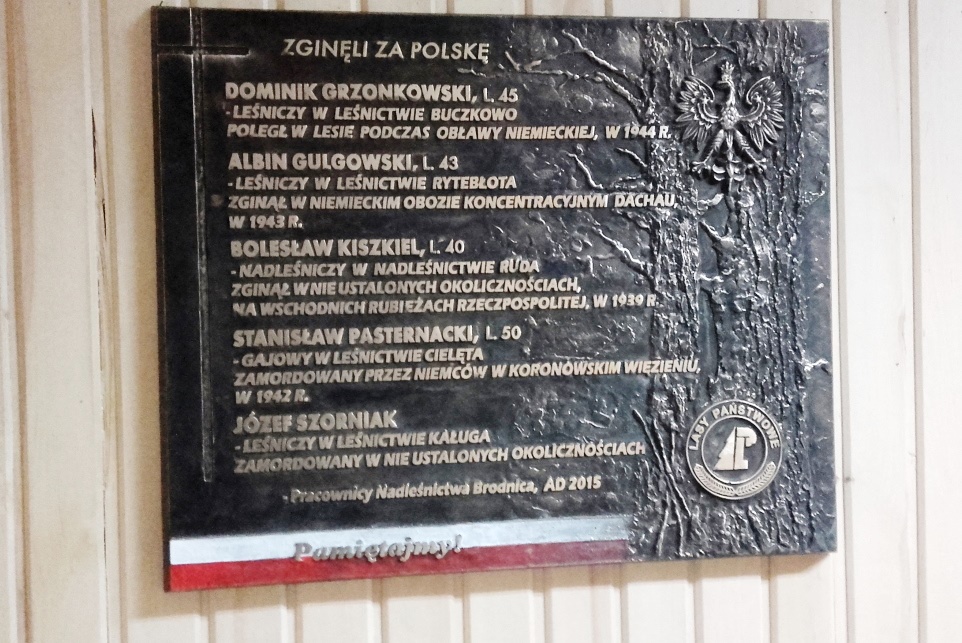 Tablica pamięci leśników w siedzibie Nadleśnictwa Brodnica